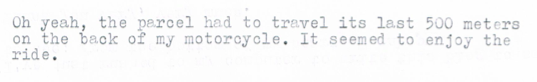 And 500 metres on a motorcycle? Oh – the tyranny of distance indeed! 🙂