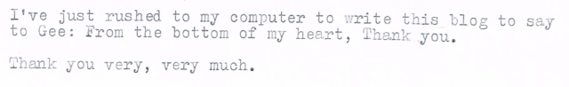 Oh My Gee! Fantastic typewriter! Phenomenal gesture on Gee's part!!