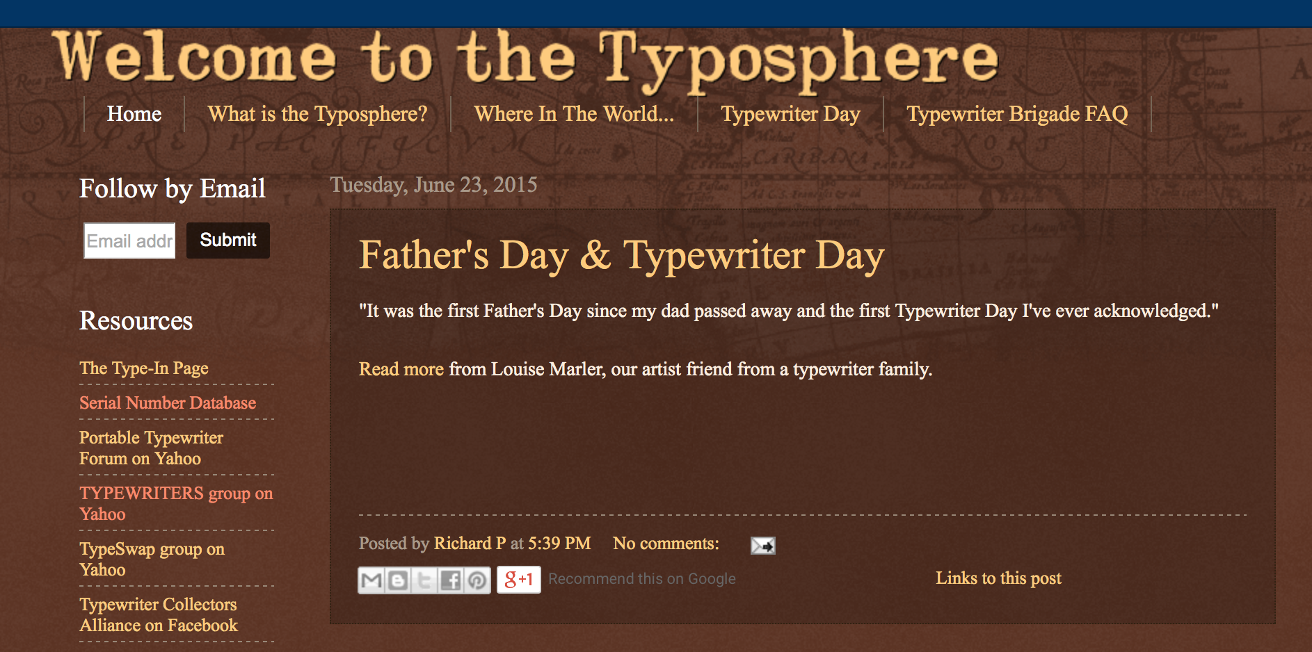 Great post. Those are some wonderful sites. I agree with the Typospheric community being a wonderful place thanks to those places and the comradery they have. You’ve shown me a few places I need to visit though. One was Typewriter Talk. I joined that soon after it was started and somewhere along my travels in the Typosphere I forgot about it.